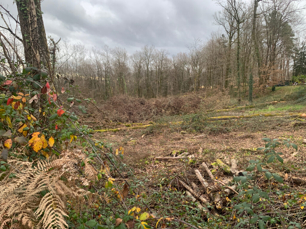 Naast ons huis heeft een slachting plaatsgevonden. Geen oorlogstaferelen met rondvliegende darmen en bloedstromen, maar een keurige, ambachtelijke executie met kettingzagen, afgehakte ledematen en houtsnippers. Het bos is omgelegd. Plat. Alsof iemand vond dat bomen ook maar eens moesten leren liggen in plaats van altijd zo hooghartig rechtop te staan.
